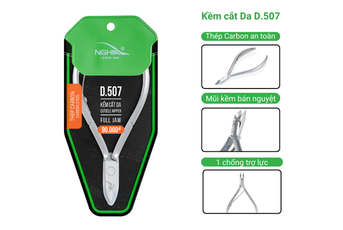 - Sản phẩm Kềm cắt da D.507 của Kềm Nghĩa được xem là một trong những sự lựa chọn hàng đầu của khách hàng chuyên nghiệp. Với thiết kế mang bán nguyệt độc đáo,đây là một trong những sản phẩm bán chạy nhất của Kềm Nghĩa hiện nay.